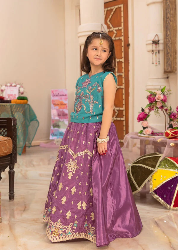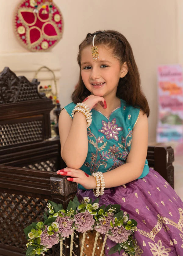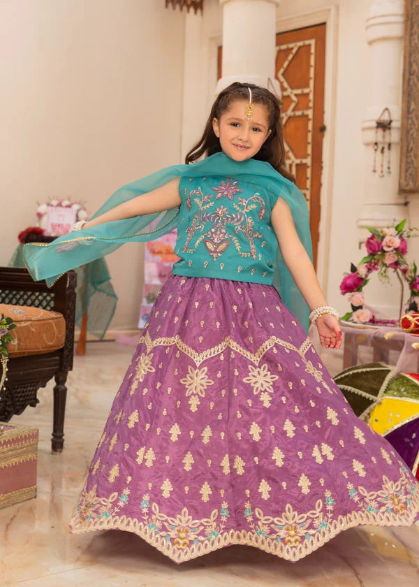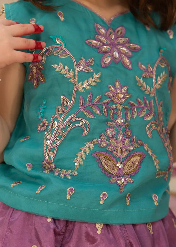 Additional Description: A charming sleeveless organza kurti adorned with delicate embroidery and handwork of beads and sequins, paired with an embroidered lehnga. The outfit is stitched with soft grip lining and finished with a cancan border to add playful volume and comfort.