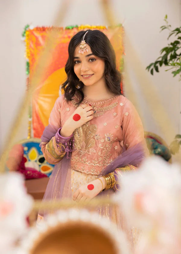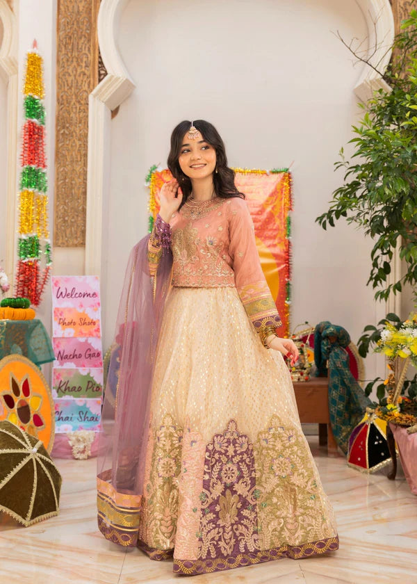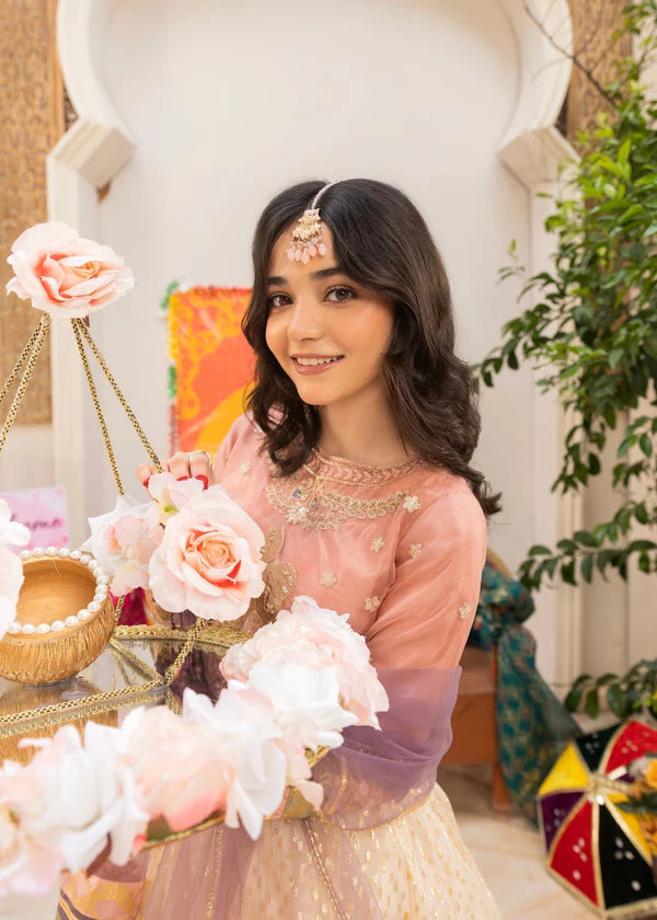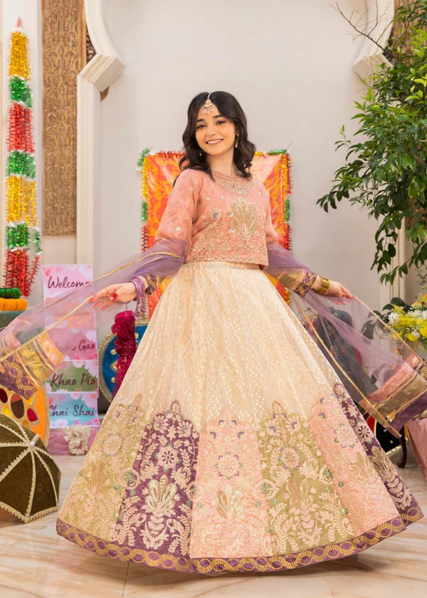 Additional Description: This stunning ensemble features a delicate organza kurti paired with a flowing, flared lehnga and a finely bordered dupatta. Adorned with intricate handwork of sequins and beads, and stitched with lining and a cancan border, it’s a timeless statement of refined craftsmanship and festive charm